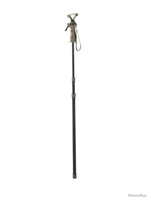 Afin de stabiliser au mieux la carabine, cette canne de pirsh possède un strap de blocage de l’arme.