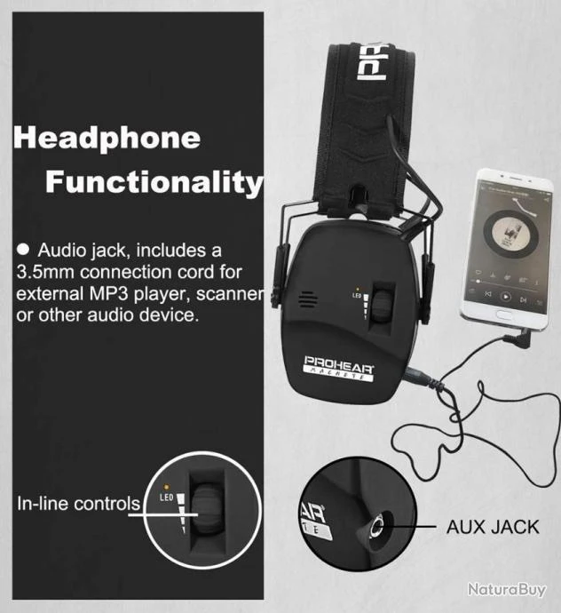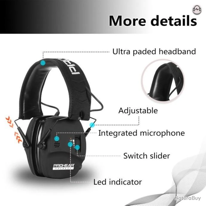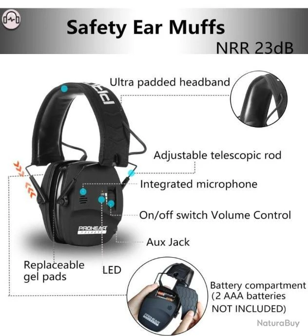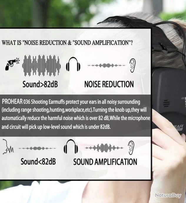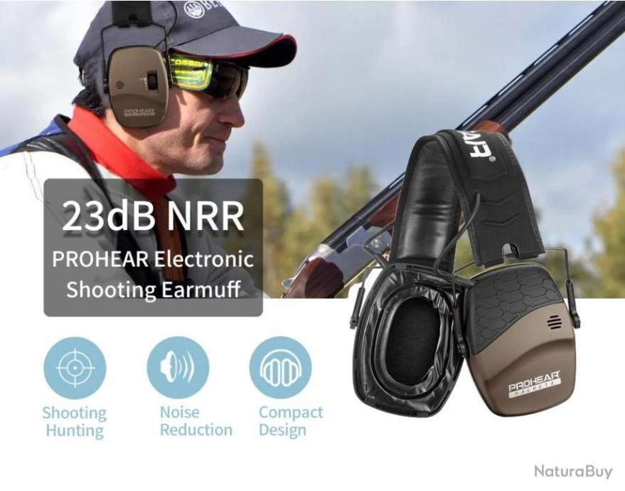 Casque anti-bruit électronique de marque Prohear atténuation SNR 28dB/NRR 23dB