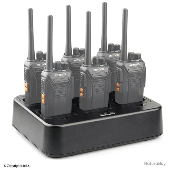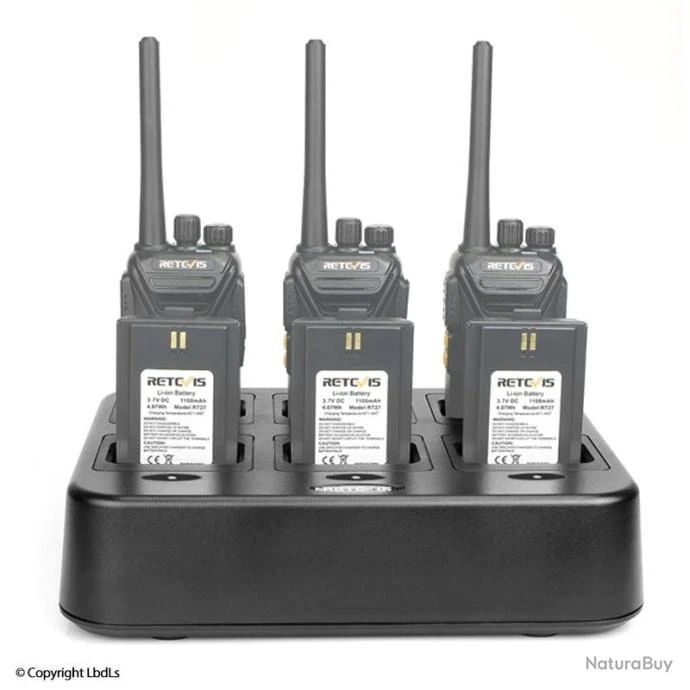 Rechargez rapidement et facilement votre parc de radio RT27 à l’aide du socle de charge 6 emplacements.