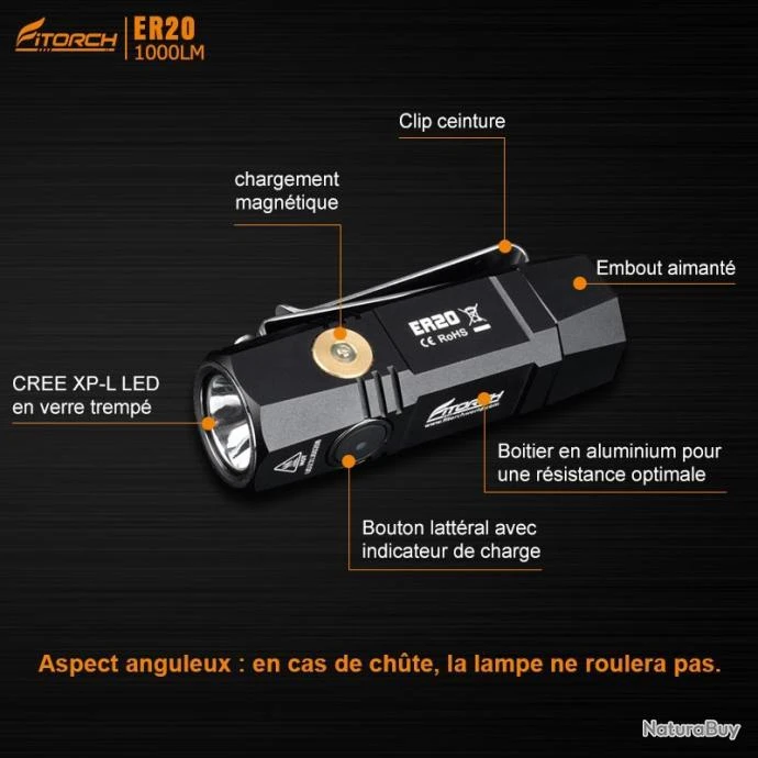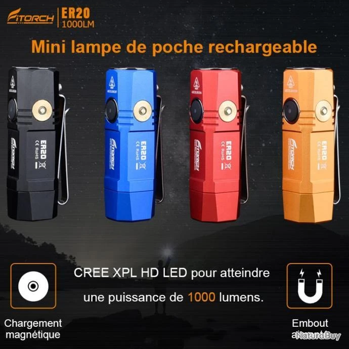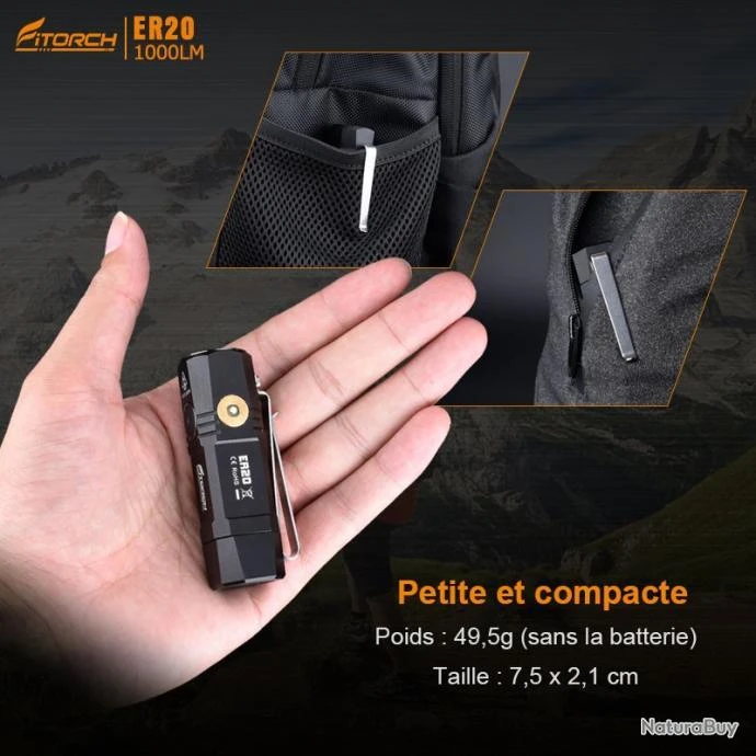 Ergonomique et compacte, la Fitorch ER20 s’impose comme la petite lampe pratique avec son embout magnétique et son clip ceinture polyvalent.
