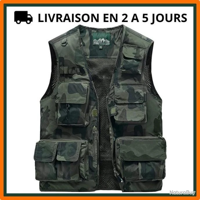 Rassemblez l’utile et l’agréable pendant votre randonnée, escalade, pêche… avec ce gilet en mailles multi-poches !