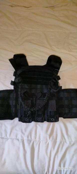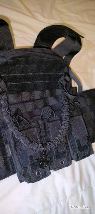 Gilet porte plaques 101Inc jamais servi, équipé d’une sangle 1 point (démontable) et un porte chargeur double (3 poches ar et 3 pour PA).