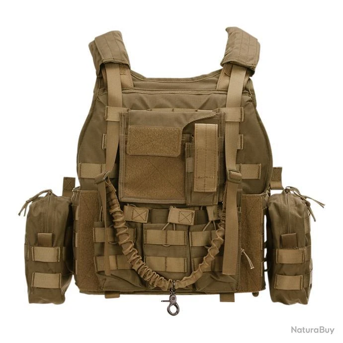 Ce gilet airsoft possède de nombreuses poches et attaches molle, il est très complet.