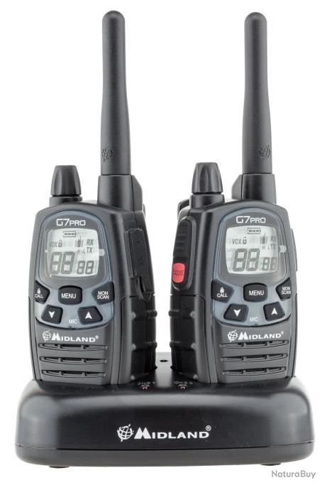 Le Midland G7 intègre toutes les fonctions classique des talkies de la marque.
