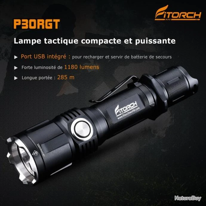 La P30RGT est une lampe tactique compacte, offrant une puissance de 1180 lumens pour une portée de 285 mètres.