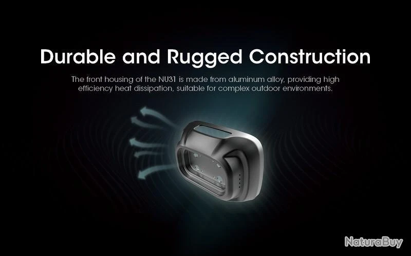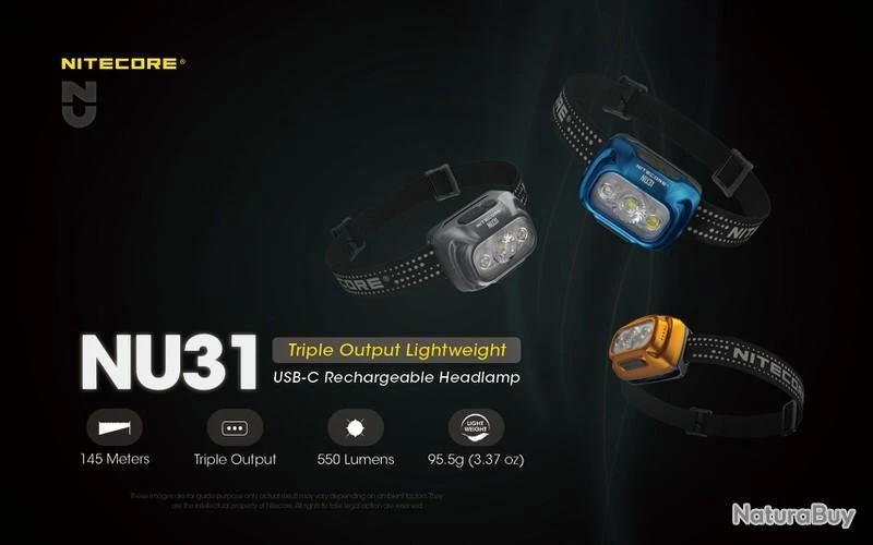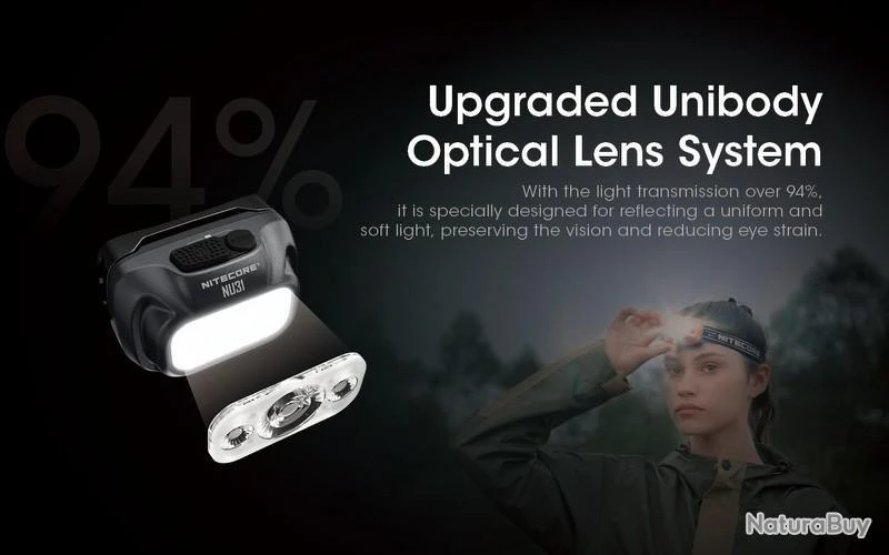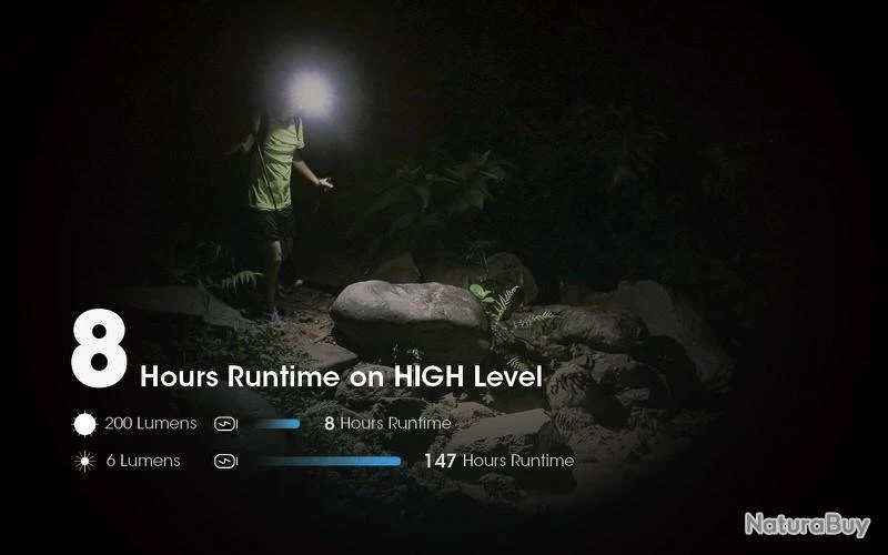 La NU31 permet de disposer d’une autonomie de 8h lorsqu’elle est activée à 200 lumens pour une portée de 90 mètres.