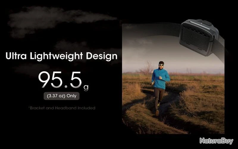 Idéale pour le running, la frontale dispose de 2 modes spéciaux et d’une lumière rouge qui protège la vision nocturne.