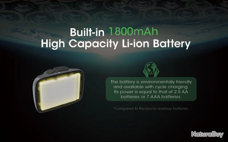 Son large champ d’éclairage (supérieur à 100°) améliore votre vision globale sur le terrain.