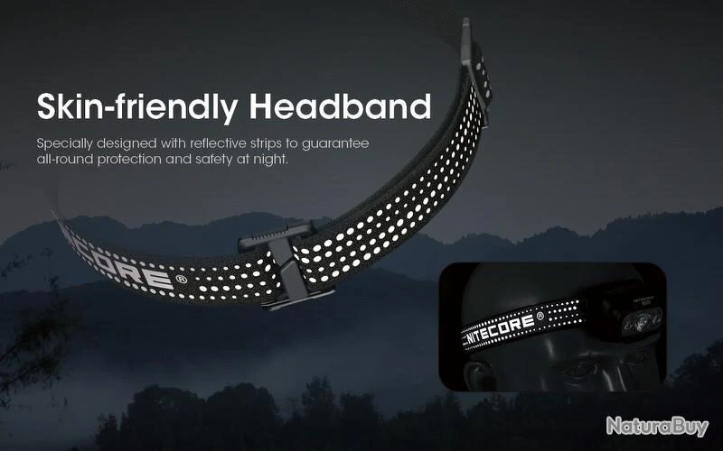 Livrée avec un bandeau réfléchissant et sa batterie, la NU31 peut être verrouillée pendant le transport pour éviter toute activation accidentelle et se recharge en USB-C.