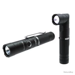 Lampe tactique rechargeable led Cree XM-L2 U2 à tête orientable jusqu’à 90° avec clip ceinture