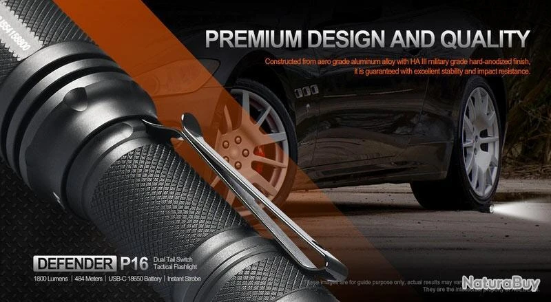 Nouveauté Acebeam, la P16 est une lampe tactique à double boutonnage d’une puissance de 1800 Lumens avec une portée de 484 mètres.