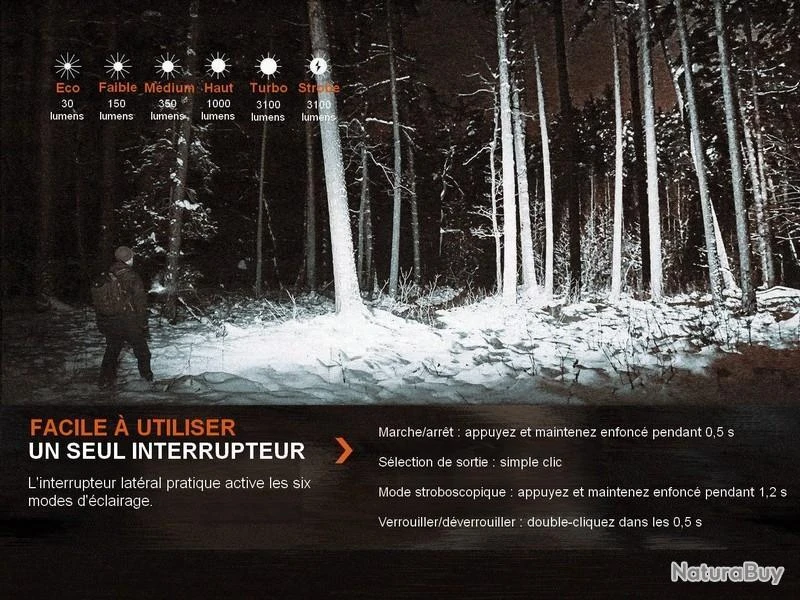 1000 Lumens ANSI (3h40) portée 138 mètres 4767cd