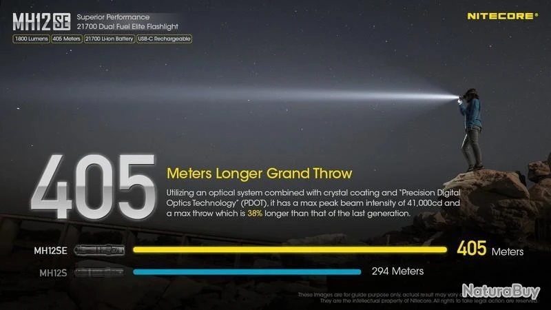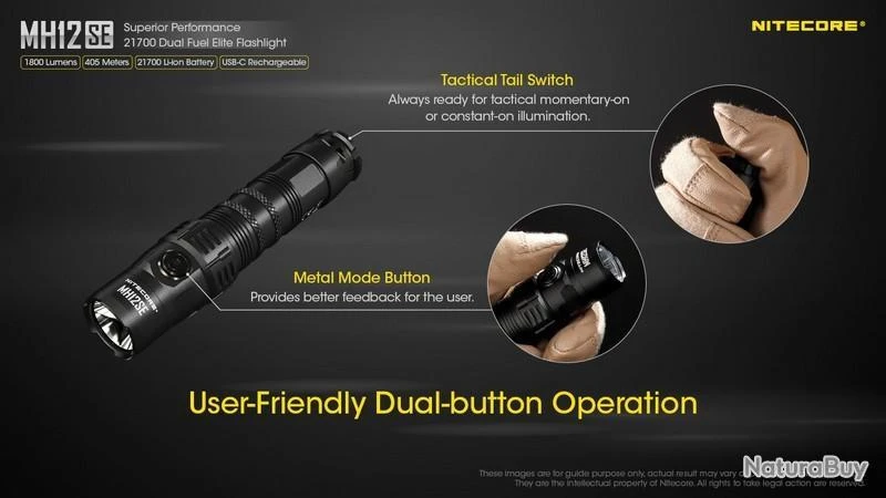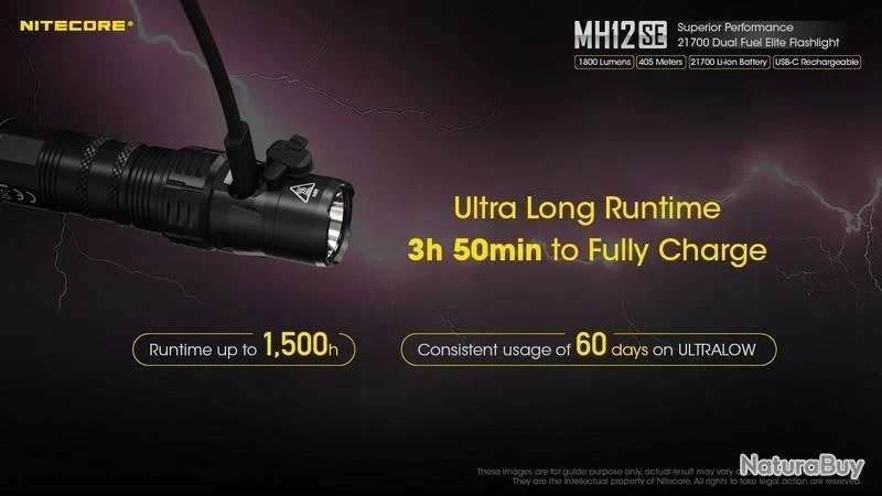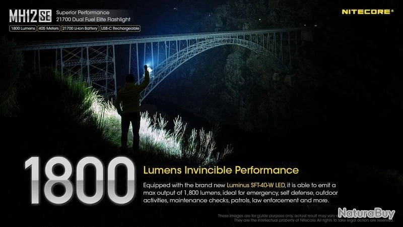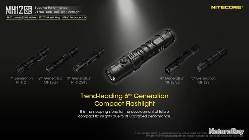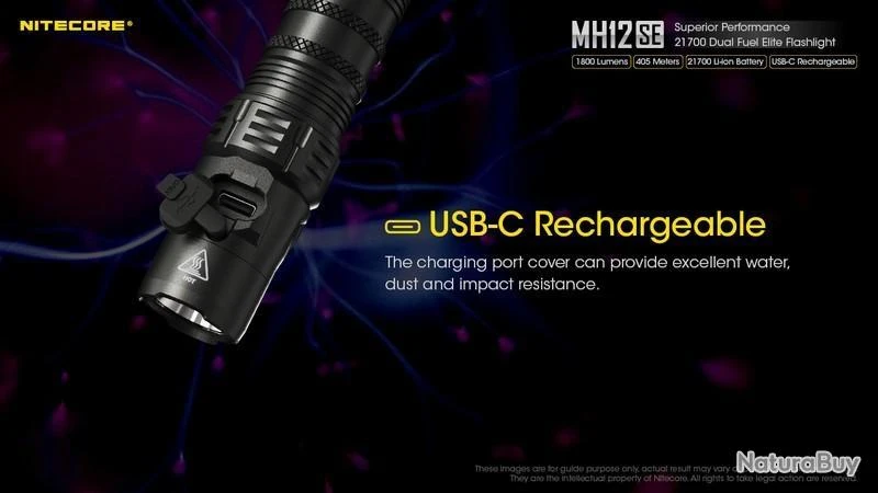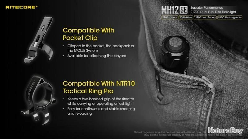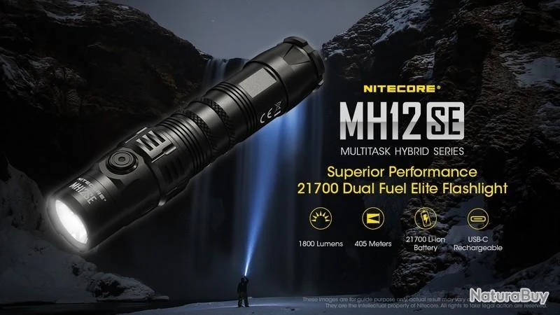 Nouveauté 2022, la MH12SE est la nouvelle version de la MH12S, la puissance reste la même avec 1800 Lumens, elle est rechargeable en Type C, équipée d’une batterie 21700 de 5000mAh offrant une autonomie plus grande et livré avec un holster Tactique NTH10 d’origine.
