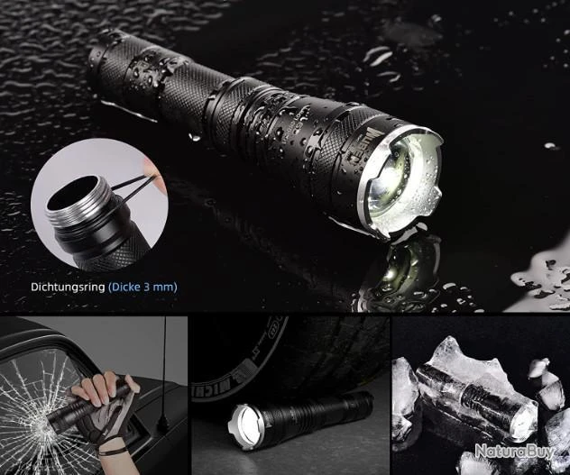 La lampe de poche WUBEN L60 utilise une LED CREE XPL avec une puissance maximale de 1200 lumens et une portĂ©e maximale de 320 mètres. Elle dispose de 4 modes de mĂ©moire (Ă©co, faible, moyen, Ă©levĂ©) et un mode flash (SOS) pour les situations d’urgence. Avec un port de charge micro USB intĂ©grĂ©, qui permet de recharger la lampe de poche directement avec la lampe de poche. On peut Ă©galement utiliser 2 piles CR123A comme piles tampons.