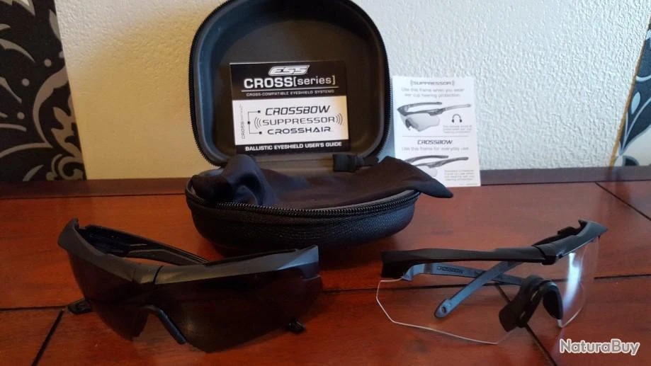 Lot STAND TIR 1 paire de Bouchons d’oreille 3M Combat Arms de nouvelle génération 4.1 et un coffret avec deux paires de lunettes balistiques de marque ESS (fumee et claire) voir photos