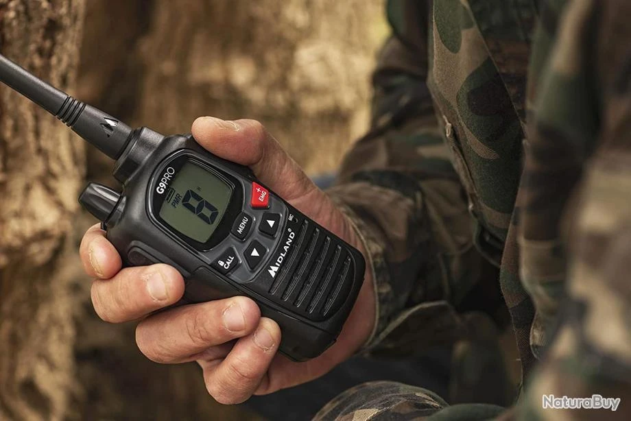 Description : Talkie double band PRO, simple d’utilisation et livré avec oreillette avec micro intégré pour communiquer en gardant les mains libres. Bouton d’urgence (EMG) : tous les postes Midland G8/G9 dans l