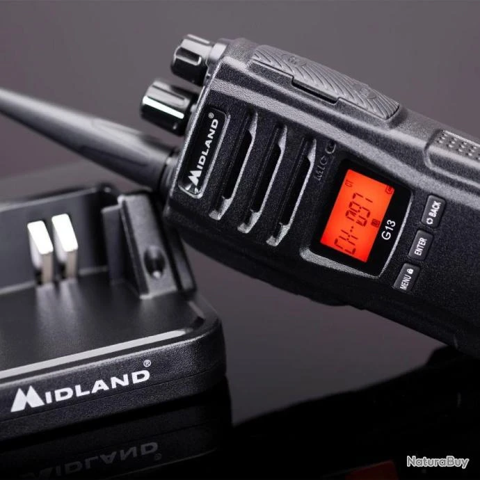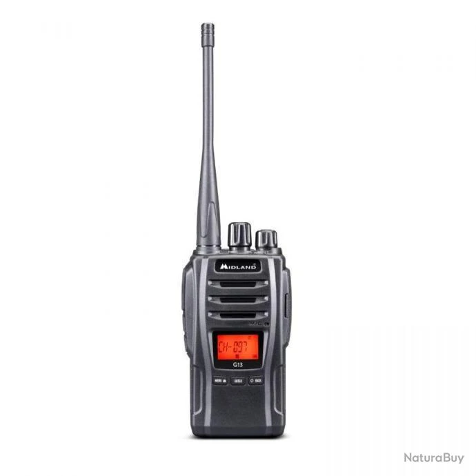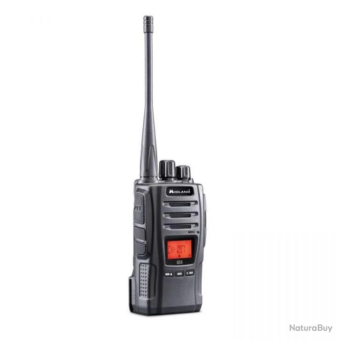 • Le G13 est le nouveau modèle de la ligne MIDLAND dédié au monde de la chasse. Les personnes qui chassent doivent pouvoir compter sur une radio fiable, flexible et possédant une grande autonomie. Si vous pensez être un chasseur exigeant et que vous recherchez un talkie-walkie capable de vous permettre de toujours signaler votre présence dans la zone de tir… ajoutez à votre équipement le nouvel émetteur-récepteur portatif G13.
