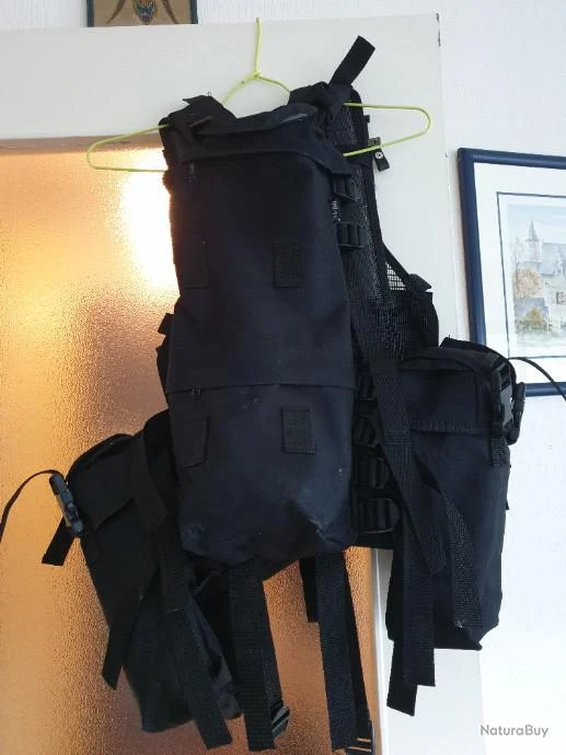 Gilet tactique Mil Tec noir. 12 poches dont une dorsale qui permet de recevoir une poche d’hydratation. Plus systĂšme d’accroche et Ajustable TrĂšs bon Ă©tat