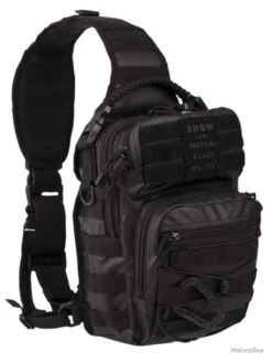 SAC D’EPAULE MONO BRETELLE D’ASSAUT US TACTIQUE NOIR ETANCHE PETIT MODELE 10 LITRES SERIE TACTICAL BLACK MILTEC AIRSOFT