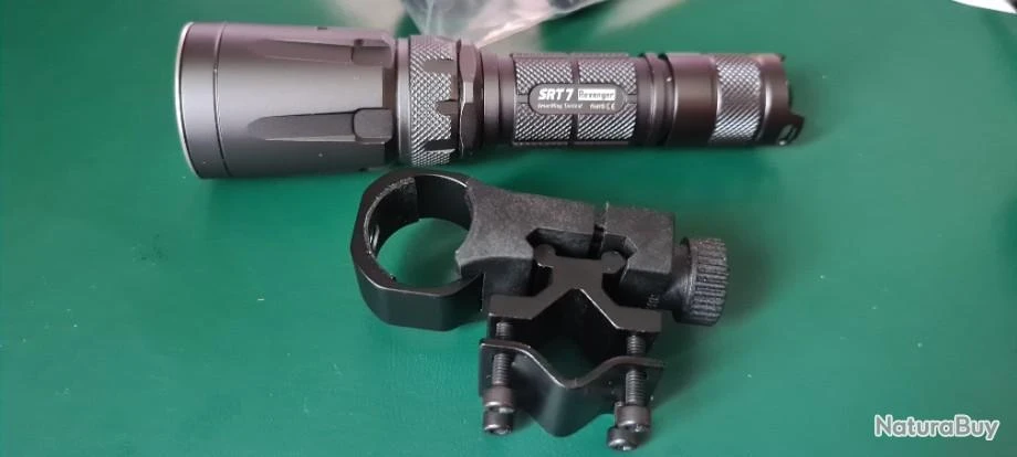 Lampe torche SRT7 Revenger avec interrupteur déporté NCRSW1 et fixation sur rail ou canon. Etat comme neuf jamais sorti sur le terrain. Accus 18650 fournis.