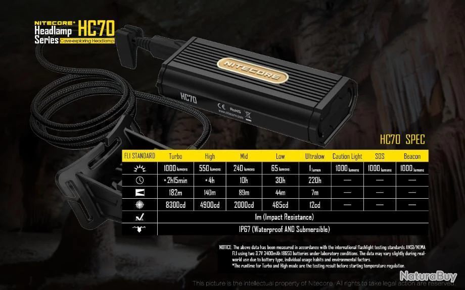 Lampe frontale de spéléologie HC70 :