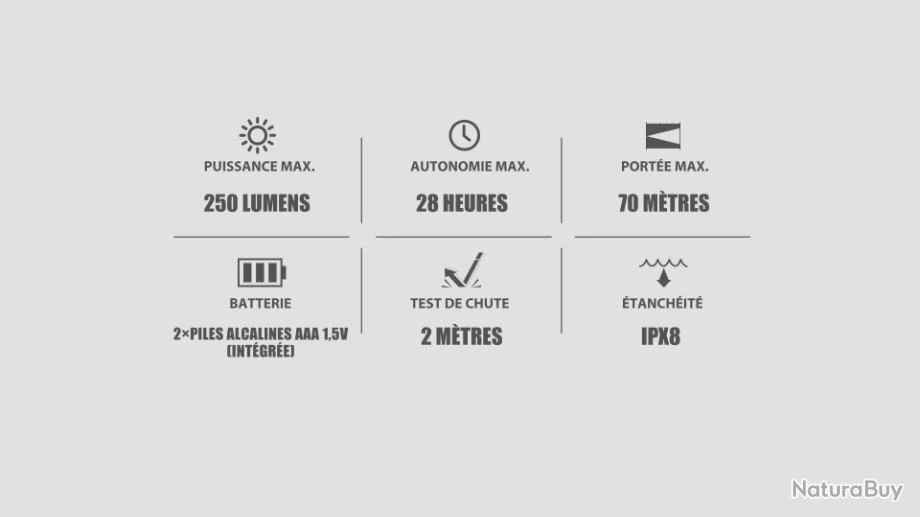 Autonomie prolongĂ©e : alimentĂ©e par deux piles AAA, elle dispose de jusqu’Ă 28 heures d’Ă©clairage Ă 15 lumens.
