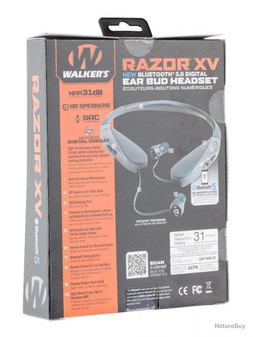 L’oreillette Razor XV permet une très forte atténuation active des sons extérieurs, elle est dotée d’une amplification indépendante Gauche/Droite X9 et de 2 écouteurs HiFi.