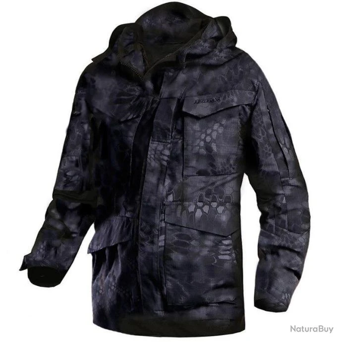 Informations additionnelles : Poignets ajustables par scratch, manches longues avec velcro, veste parka militaire style M-65 étanche
