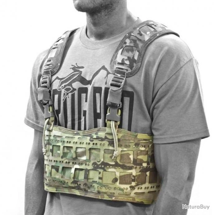Une plateforme thoracique Multicam®, généreuse dotée d’une excellente capacité en charge et adaptée à tous les usages pour fixer des poches molles ainsi que des accessoires à l’aide des trous utilitaires. Elle est composée de 14 colonnes pour 3 rangées PALS et ne pèse que 225 g. L’intérieur matelassé en 3D Mesh assure un confort et une respirabilité optimale.