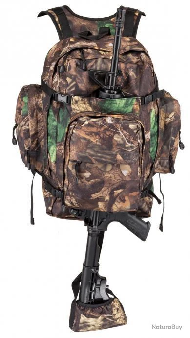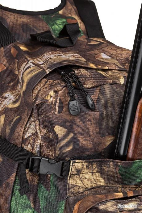 Sac à dos de 40 litres en polyester enduit permettant de porter un fusil ou une carabine grâce à son système de maintien par la crosse. Rendu très confortable par ces deux systèmes d’attache qui permettent d’équilibrer la charge se trouvant dans le sac à dos, la répartissant ainsi sur les épaules et le dos. Ses multiples pochettes vous permettront d’organiser votre sac au mieux. Vous aurez ainsi la possibilité de garder à porter de main votre fusil mais aussi vos cartouches, une trousse de secours, un appareil photo et votre gourde.Son aspect extérieur camo lui confère un aspect discret très apprécié des chasseurs pour passer inaperçu à l’approche et en battue.