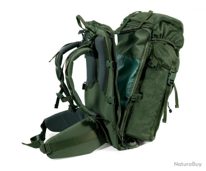 Sac-à-dos en loden avec un logement extérieur pour gibier en pvc lavable équipé de fermeture sur le haut à encastrer pour avoir une sécurité meilleure, fermetures éclair et sangles réglables latérales. Un nouveau dos RSV ergonomique en filet tendu très confortable qui permet de distribuer le poids du sac et de maintenir le dos aéré.