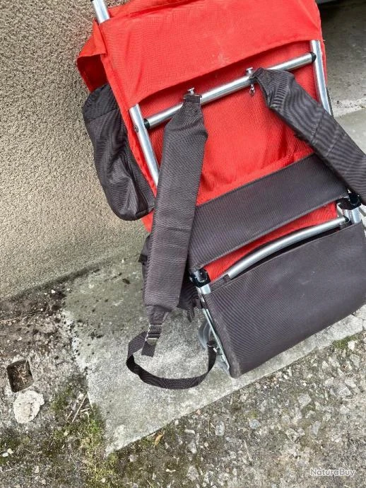 Sac a dos Walker se transformant en siege avec sécurité anti fermeture accidentelle. En alu et nylon cordura rouge pour la battue ou autre d’ailleurs. Une grande poche dorsale et une autre plus bas, a fermeture éclair pour les papiers. Quatres poches a fermeture éclair sur les cotés. Se déplie et se replie en 10 secondes, 50L de contenance. Tout trouve sa place et est a l’abris. Les fermetures éclair sont toutes fonctionnelles et possedent toutes un rabat pour l’étanchéité . Possibilité de rajouter un porte carabine au dessus(voir photo numero 4) car empiecements prévus. Il repose au sol toujours sur ses pietements alu. Le principe de base étant de ne rien avoir dans les poches et de tout perdre ou chercher ses clés, le téléphone, le parapluie, les balles ou la cornette. Tout est dans le sac a condition de ne pas l’oublier !
