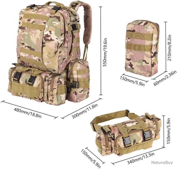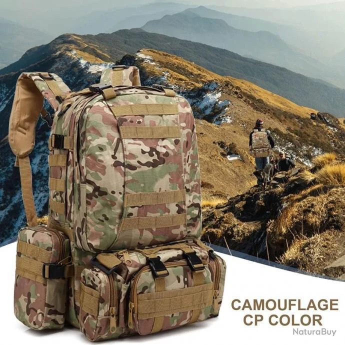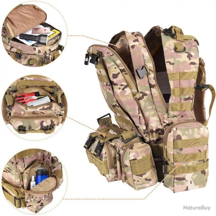 D’une structure molle et résistante, ce sac à dos tactique avec 2 sacs accessoires détachables est idéal pour vos activités en plein air comme la chasse, les activités tactiques, etc.