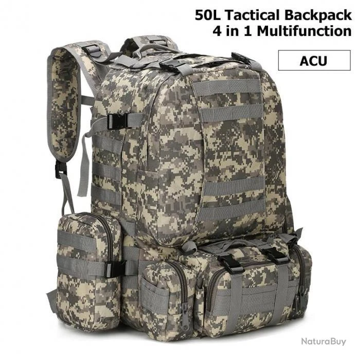 Sac à dos tactique de 50l, sac à dos militaire pour hommes, sac tactique de Sport Molle 4 en 1, sac à dos de l’armée d’escalade de randonnée en plein air, sacs de Camping ACU