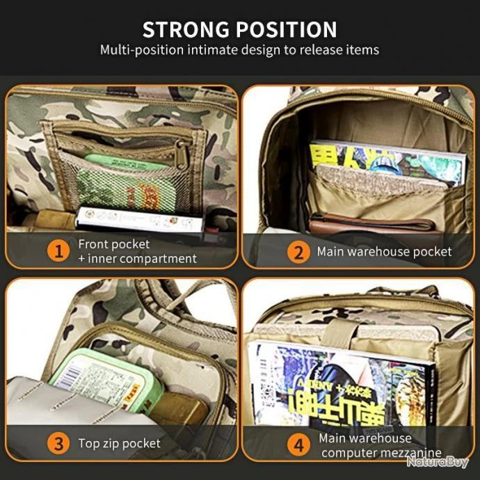 Sac à Dos Tactique Militaire 40L Pythons Bandoulière Homme Imperméable Chasse Randonnée Camping