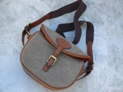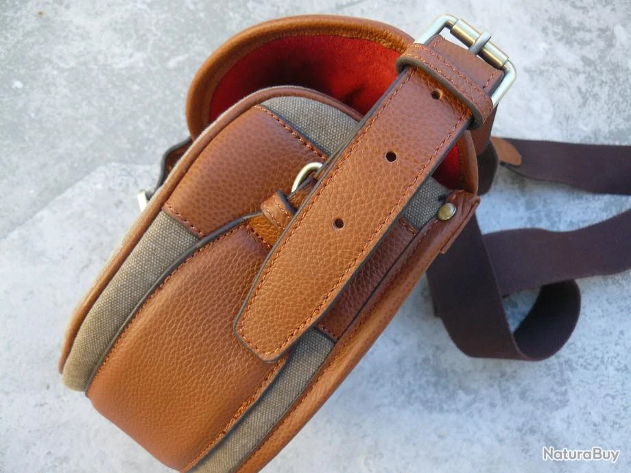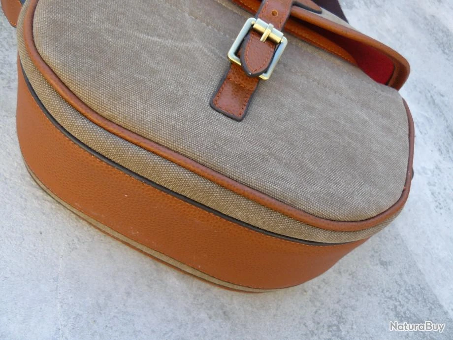Trè beau sac à cartouches en cuir fauve et canvas…