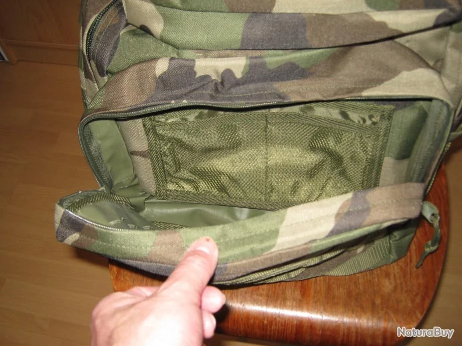 bonjour je vends un sac dos de chasse de la marque city guard ils est kaki d’une contenance d’environ 35L , il est neuf je m’en suis jamais servi , il a un renfort en mousse dans tout le dos du sac et les 2 bretelles d’épaule , 1 sangle clipssable pour le tour de taille , 2 poches moyenne devant le sac : 1 poche de 32cm de long et 25cm de haut et 1 poche de 32cm de long et 23 cm de haut , elles se ferment les 2 avec une fermeture , dans les poches il y des poches en filet , dans le grand compartiment 48 cm de haut et environ de 36 cm de large , a l’intérieur une grande poche avec filet et 1 poche avec fermeture , je le vends 50 euros