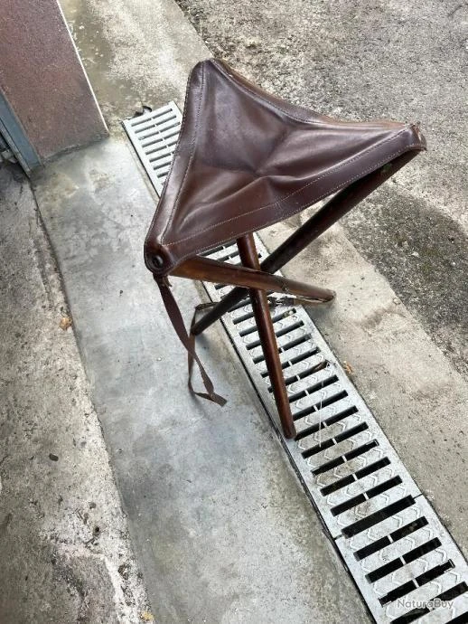 Siege trépied en bois et cuir pour l’assise. Bois et cuir seront traités pour l’envoi. A quelques années de service mais fait le job comme un neuf. Valeur a neuf 45€ à vendre 25€