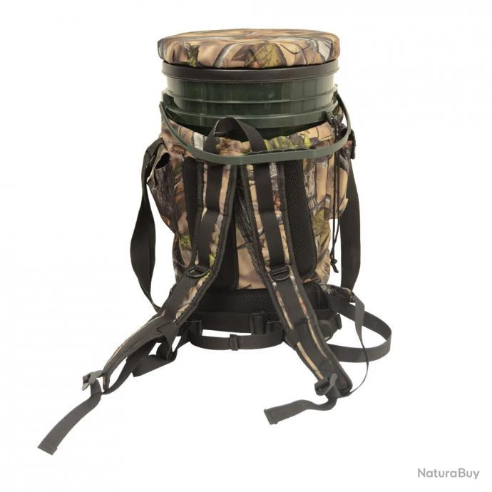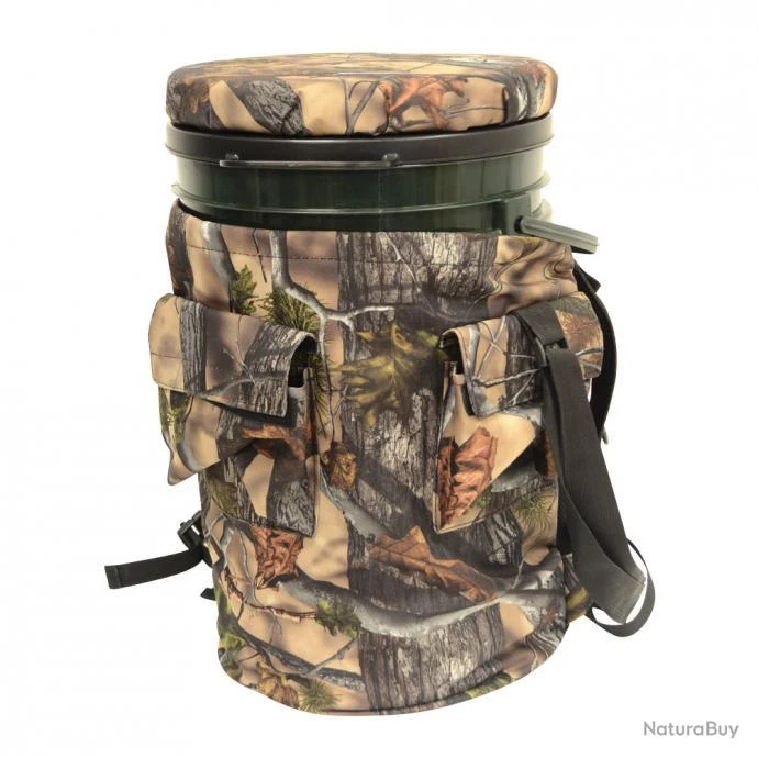 En effet, ce siège chasse est rembourré, dispose d’un grand espace de rangement (25L), d’un couvercle pivotant sur 360° et de 3 poches de rangement extérieures à scratch.
