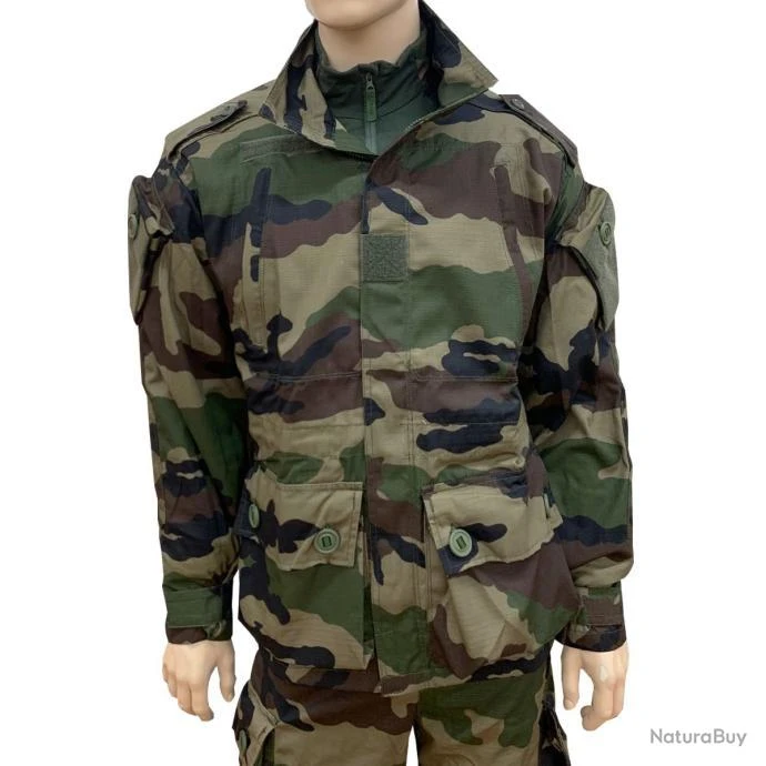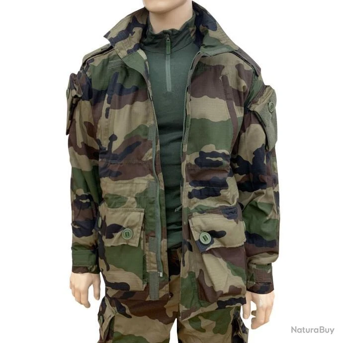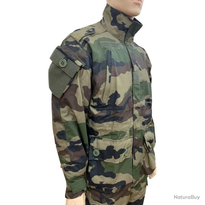 - Atouts: Tissu rip-stop très robuste, veste confortable et pratique. Possède des épaulettes et emplacement auto-agrippant pour grade, bande patronymique et autres patchs. Col montant zippé. Possède un cordon de serrage à la taille et une bande élastique en haut du dos pour un meilleur confort. Poignets ajustables.