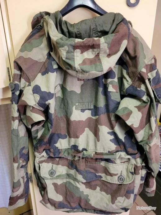 Avec capuche , tissus ripstop , tissu tres resistant , bon etat