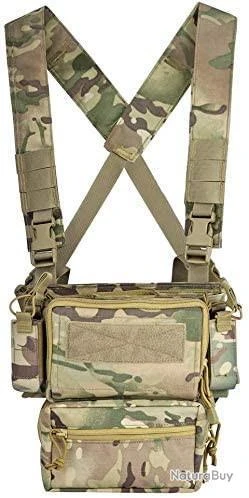 La triple poche pour chargeurs peut être détachée et le Velcro amovible est placé à plat sur le poitrail, qui peut être associé à un gilet tactique.