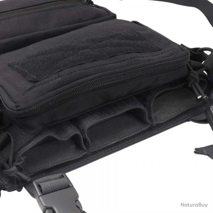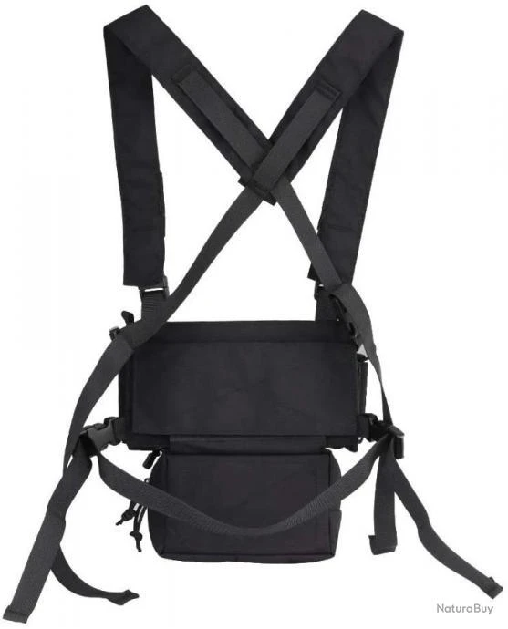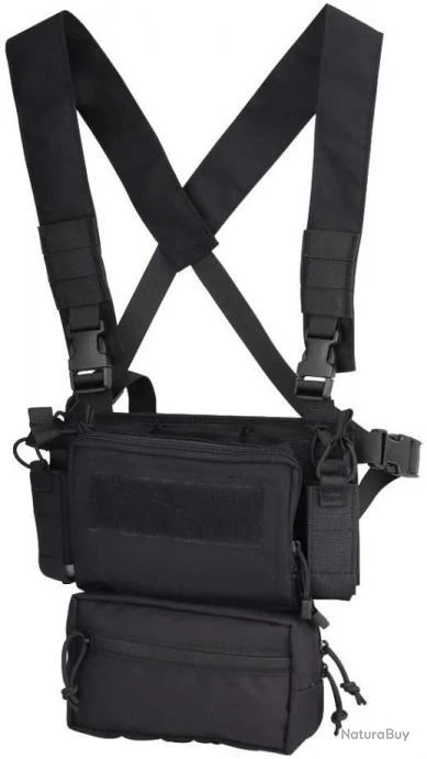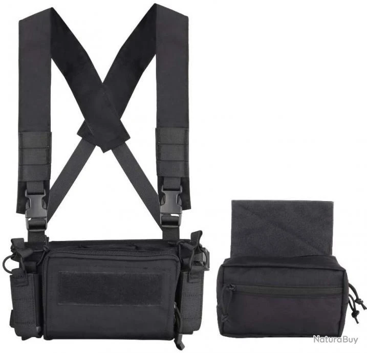 La triple poche pour chargeurs peut être détachée et le Velcro amovible est placé à plat sur le poitrail, qui peut être associé à un gilet tactique.