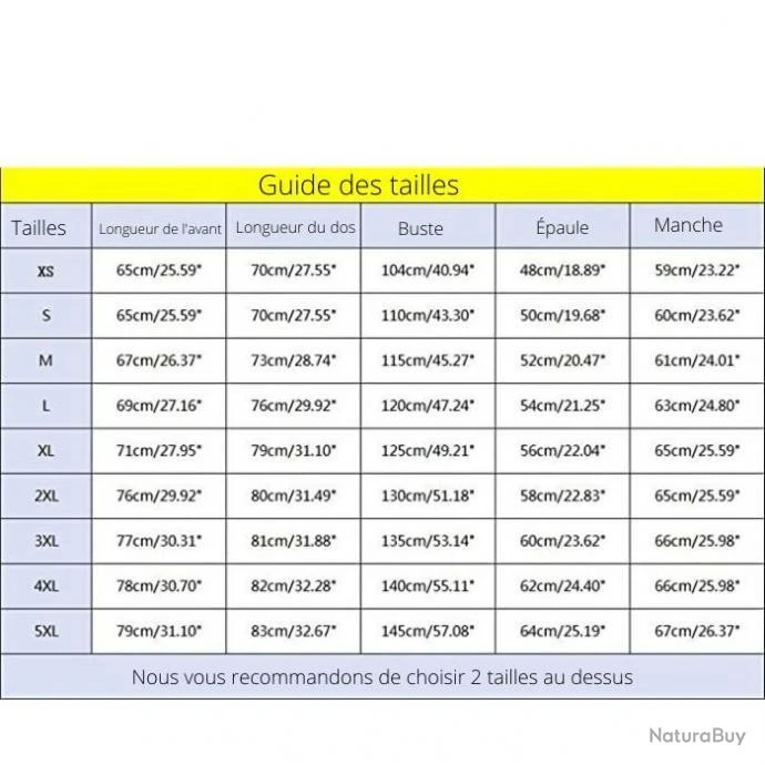 Taille : XS, S, M, L, XL, 2XL, 3XL, 4XL, 5XL
